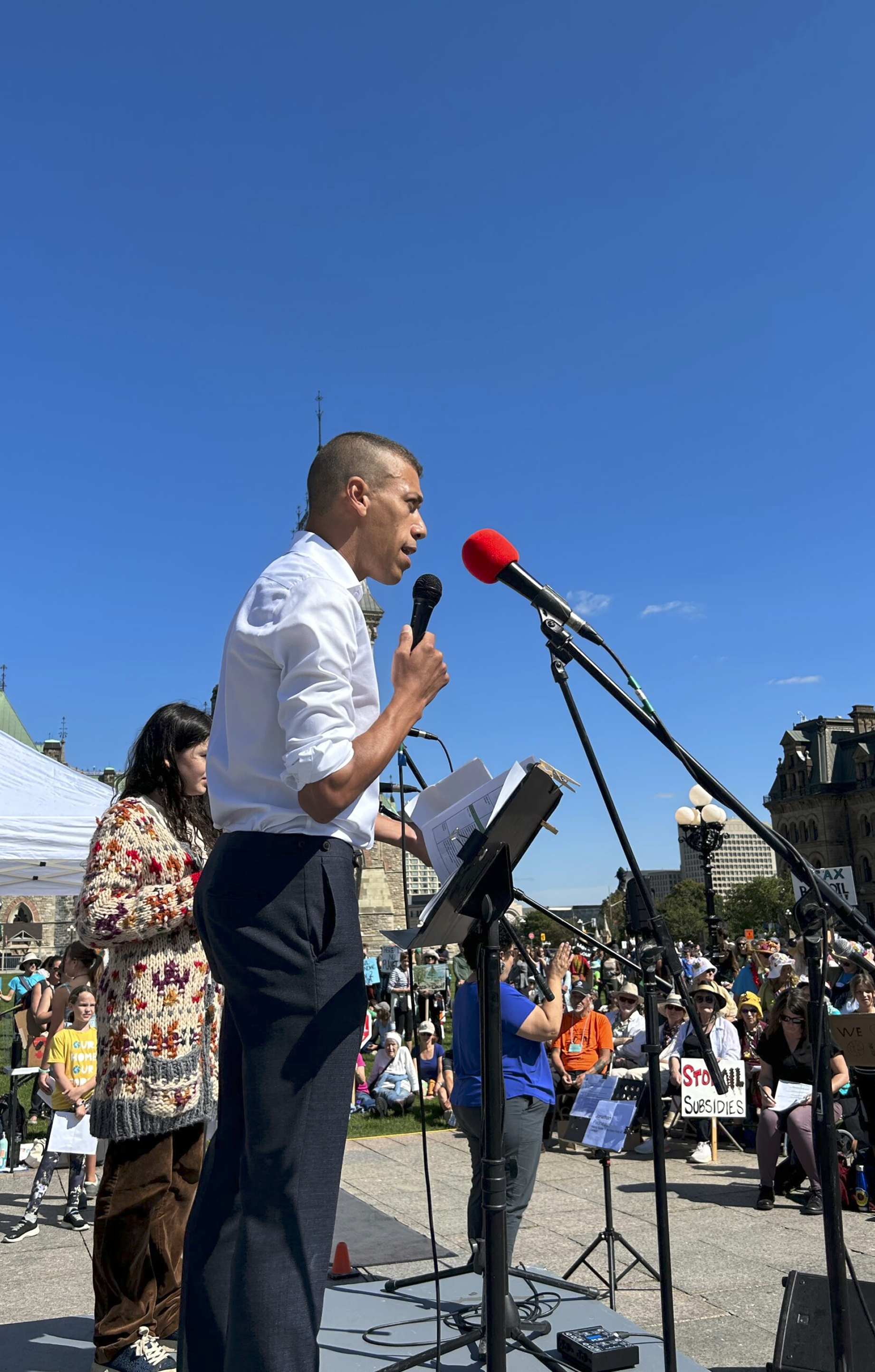 Après un voyage de recherche en Ukraine pour enquêter sur les crimes de guerre russes durant les dix premiers jours du conflit, JP s’est engagé en politique en 2022. Il s’est présenté aux côtés d’Elizabeth May pour devenir cochef du Parti vert. Depuis, il parcourt le pays, écoutant les Canadiens et cherchant à comprendre leurs priorités. D’un océan à l’autre, il a rencontré des communautés, des travailleurs de première ligne et des militants pour bâtir un mouvement politique qui place les gens et la planète au premier plan.